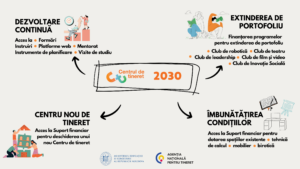 Se urmărește creșterea atractivității centrelor prin dotarea acestora cu echipamente moderne, tehnică IT, materiale educaționale, precum și crearea unui mediu sigur și inovator pentru activități de tineret.